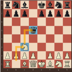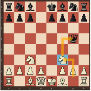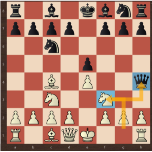 White develops the knight and attack the queen at the same time. In chess terms we say white is gaining a “tempo”. Gaining tempo in chess is gaining an extra move.