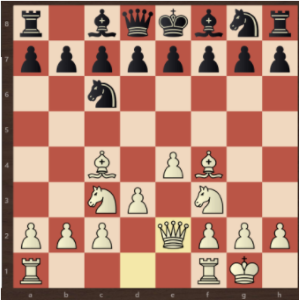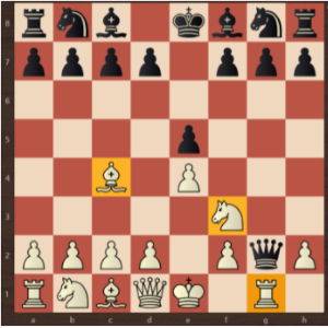 Instead of playing a defensive move, white develops the knight gaining a tempo on the queen, sacrificing the pawn to open the file for the rook. Can you spot the move white should play after black takes the pawn?